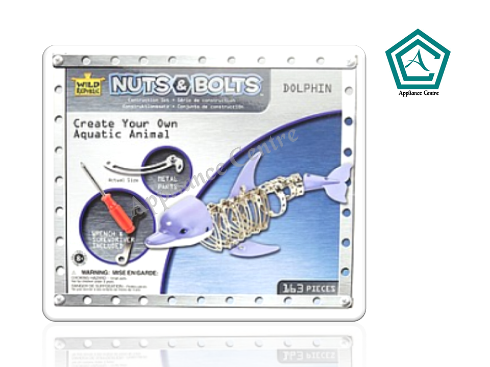Nuts & Bolts Dolphin are highly detailed body parts that are posable. Plastic and metal construction.all tools are included with easy to follow instructions.