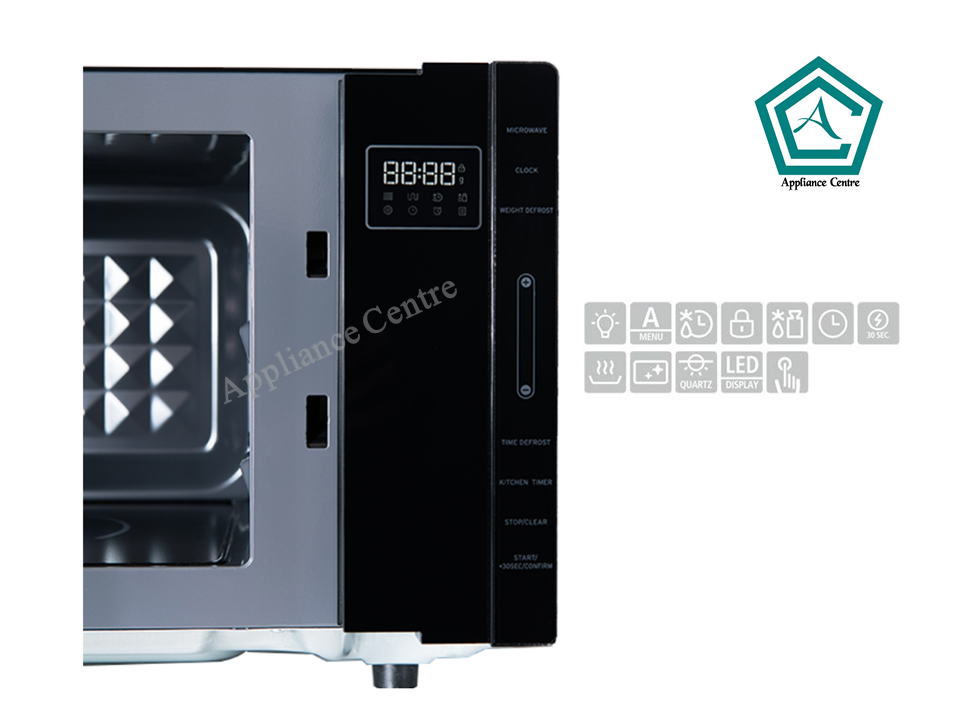 Refined microwave technology. Touch sensor control with child lock function. Midea Flatbed Microwave uses a 3D diamond plate to improve cooking efficiency. The black mirror design will be a highlight in your kitchen.