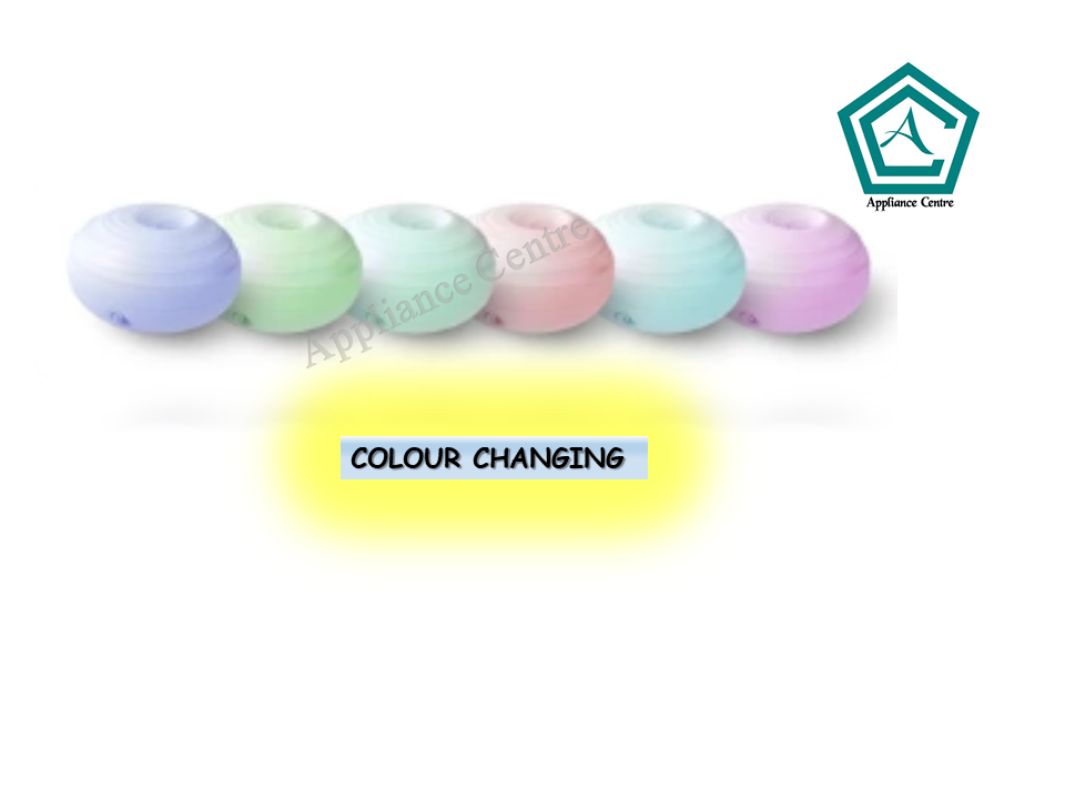 Creates a wonderfully soothing atmosphere with soft changing colours and a calming stream of mist with your favourite fragrance. The stylish design is suitable for any room and being almost silent it is perfect for use when sleeping.