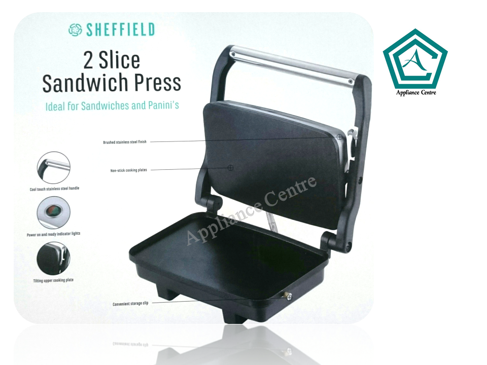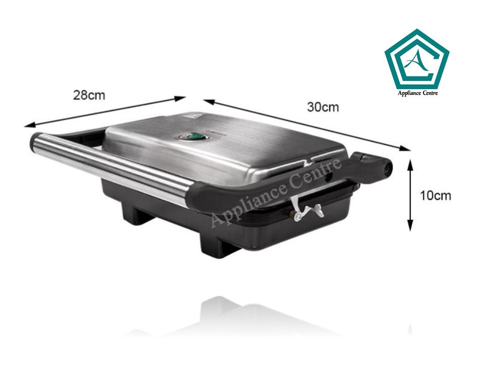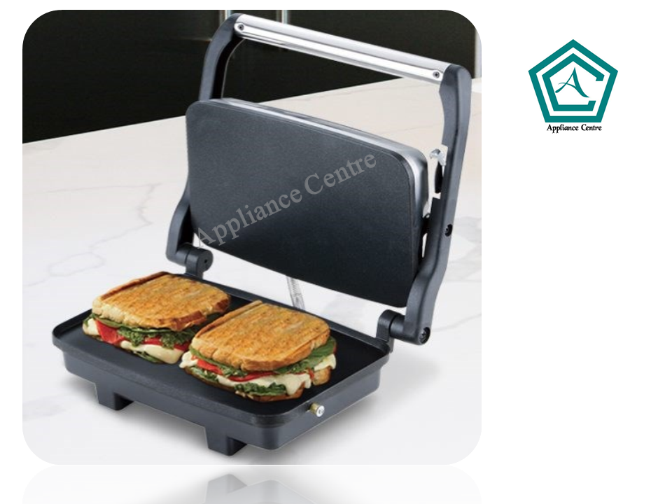 With this smart, stainless steel sandwich press you can cook cafe-style toasted sandwiches at home. This press offers flexibility with its adjustable top plate. The item with full factory or Appliance Centre. As well as sporting an easily cleaned non-stick cooking surface, it can conveniently cook up to four sandwiches at once.